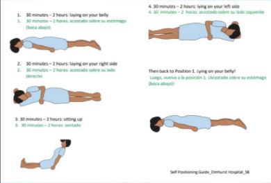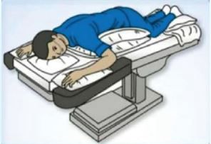 * ಒಂದು ಅಥವಾ ಎರಡು ದಿಂಬುಗಳನ್ನು ಎದೆಯಿಂದ ಕೆಳಭಾಗದಲ್ಲಿ, ತೊಡೆಯಿಂದ ಮೇಲ್ಭಾಗದಲ್ಲಿ ಇರಿಸಬೇಕು (ಚಿತ್ರ ನೋಡಿ).