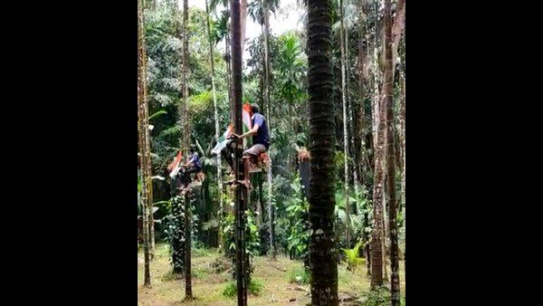 ಭಾರತದ ತ್ರಿವರ್ಣ ಧ್ವಜವನ್ನು ಹಿಡಿದುಕೊಂಡು ತಾನೇ ಅವಿಷ್ಕರಿಸಿದ ಟ್ರೀ ಬೈಕ್ ಮೂಲಕ ಅಡಿಕೆ ಮರವೇರುತ್ತ ಭಾರತ ತಂಡವನ್ನು ಹುರಿದುಂಬಿಸುವ ದೃಶ್ಯವನ್ನು ಅವರ ತೋಟದಲ್ಲೇ ಚಿತ್ರೀಕರಣ ಮಾಡಲಾಗಿದೆ.