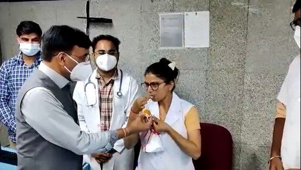 ಶುಕ್ರವಾರ ನವದೆಹಲಿಯ ಸಫ್ದರ್ ಜಂಗ್ ಆಸ್ಪತ್ರೆಗೆ ಭೇಟಿ ನೀಡಿದ ಕೇಂದ್ರ ಸಚಿವರು ಕೊರೊನಾವೈರಸ್ ಲಸಿಕೆ ವಿತರಣೆಯಲ್ಲಿ ಅಭೂತಪೂರ್ವ ಸಾಧನೆಗೈದ ವೈದ್ಯರು ಹಾಗೂ ಆಸ್ಪತ್ರೆಯ ವೈದ್ಯಕೀಯ ಸಿಬ್ಬಂದಿಗೆ ಸಿಹಿ(ಲಡ್ಡು) ನೀಡುವುದರ ಮೂಲಕ ಸಂಭ್ರಮಿಸಿದರು.