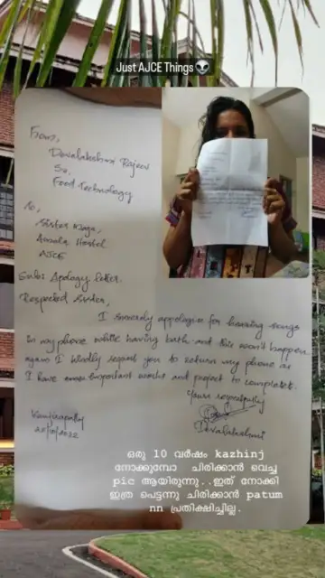ಕೇರಳದ ಅಮಲ್ ಜ್ಯೋತಿ ಕಾಲೇಜ್ ಆಫ್ ಇಂಜಿನಿಯರಿಂಗ್ನ ವಿದ್ಯಾರ್ಥಿನಿಯೊಬ್ಬಳು ಹಾಸ್ಟೆಲ್ ಬಾತ್ರೂಮ್ನಲ್ಲಿ ಹಾಡು ಕೇಳುತ್ತ ಸ್ನಾನ ಮಾಡಿದ್ದಕ್ಕೆ ತನ್ನ ಸ್ಮಾರ್ಟ್ಫೋನ್ ಕಳೆದುಕೊಳ್ಳುವಂತಾಗಿದೆ. ಮಾತ್ರವಲ್ಲ ಕ್ಷಮಾಪಣಾ ಪತ್ರವನ್ನೂ ಬರೆಯುವಂತಾಗಿದೆ.
