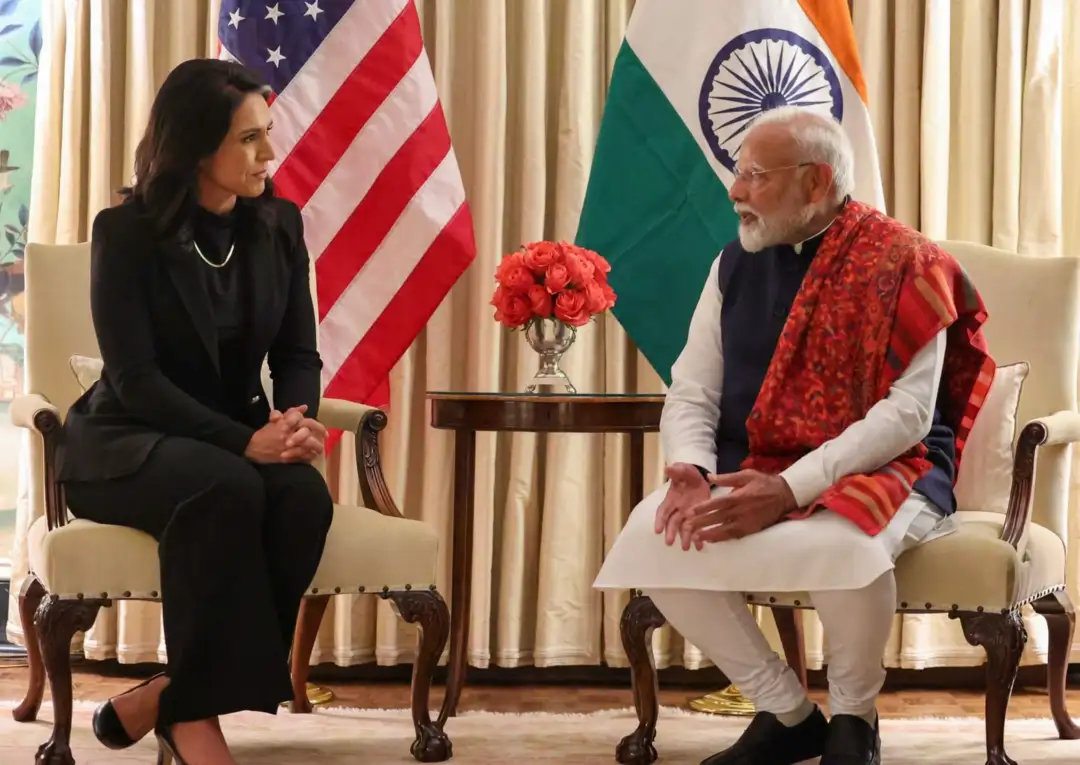 ಅಮೆರಿಕದ ರಾಷ್ಟ್ರೀಯ ಗುಪ್ತಚರ ವಿಭಾಗದ ನಿರ್ದೇಶಕರಾದ ತುಳಸಿ ಗಬ್ಬಾರ್ಡ್ ಮತ್ತು ಪ್ರಧಾನಿ ನರೇಂದ್ರ ಮೋದಿ ಅವರು ವಾಷಿಂಗ್ಟನ್ನಲ್ಲಿ ಮಾತುಕತೆ ನಡೆಸಿದರು