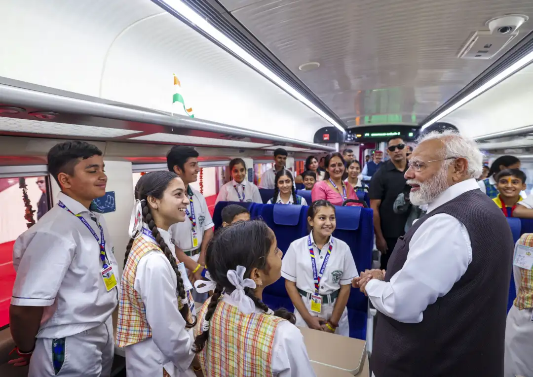 ಚೆನಾಬ್ ರೈಲ್ವೆ ಸೇತುವೆ ಉದ್ಘಾಟನೆಗೊಂಡ ನಂತರ ಸಂಚಾರ ಆರಂಭಿಸಿದ ವಂದೇ ಭಾರತ್ ರೈಲಿನಲ್ಲಿ ಪ್ರಧಾನಿ ನರೇಂದ್ರ ಮೋದಿ ಅವರು ವಿದ್ಯಾರ್ಥಿಗಳೊಂದಿಗೆ ಶುಕ್ರವಾರ ಮಾತನಾಡಿದರು