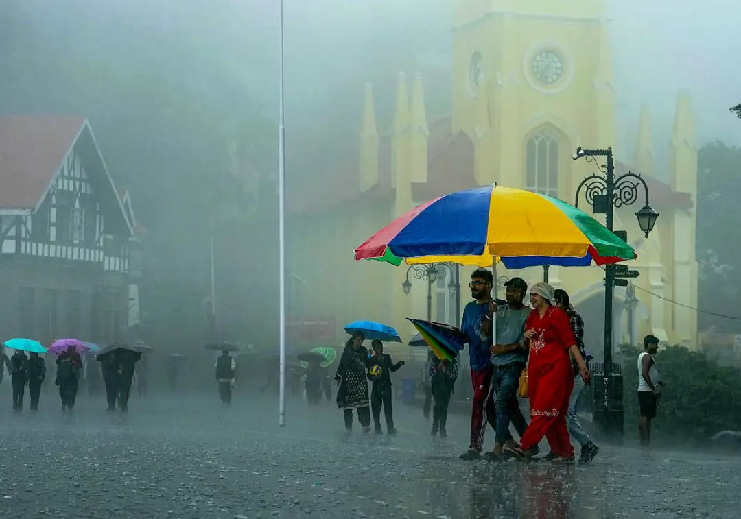 ಹಿಮಾಚಲ ಪ್ರದೇಶದ ಶಿಮ್ಲಾದಲ್ಲಿ ಮಳೆಯಲ್ಲಿ ಸಾಗಿದ ಜನರು