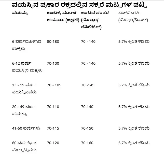 ಟೈಪ್ 1 ಮಧುಮೇಹ ಮಕ್ಕಳಲ್ಲಿ ಕಂಡುಬರುತ್ತದೆ. ಟೈಪ್ 2 ಮಧುಮೇಹ ವಯಸ್ಕರಲ್ಲಿ ಹೆಚ್ಚಾಗಿ ಕಂಡುಬರುತ್ತದೆ . ಆದಾಗ್ಯೂ, ಸಕ್ಕರೆ ಮಟ್ಟ ಮತ್ತು ಗುರಿ ಎರಡೂ ವಿಭಿನ್ನವಾಗಿವೆ. ವಯಸ್ಸಿಗೆ ಅನುಗುಣವಾಗಿ ರಕ್ತದಲ್ಲಿನ ಸಕ್ಕರೆ ಮಟ್ಟವನ್ನು ತಿಳಿದುಕೊಳ್ಳುವುದು ಮುಖ್ಯ. ನಿಮ್ಮ ರಕ್ತದಲ್ಲಿನ ಸಕ್ಕರೆ ಮಟ್ಟ ನಿಮಗೆ ತಿಳಿದಿದ್ದರೆ, ನೀವು ಸರಿಯಾದ ಚಿಕಿತ್ಸೆ, ಆಹಾರ ಯೋಜನೆ ಮತ್ತು ವ್ಯಾಯಾಮವನ್ನು ಯೋಜಿಸಬಹುದು. ವಯಸ್ಸಿಗೆ ಅನುಗುಣವಾಗಿ ರಕ್ತದಲ್ಲಿನ ಸಕ್ಕರೆ ಮಟ್ಟಗಳು ಏನಾಗಿರಬೇಕು ಎಂಬುದನ್ನು ಕಂಡುಹಿಡಿಯೋಣ.