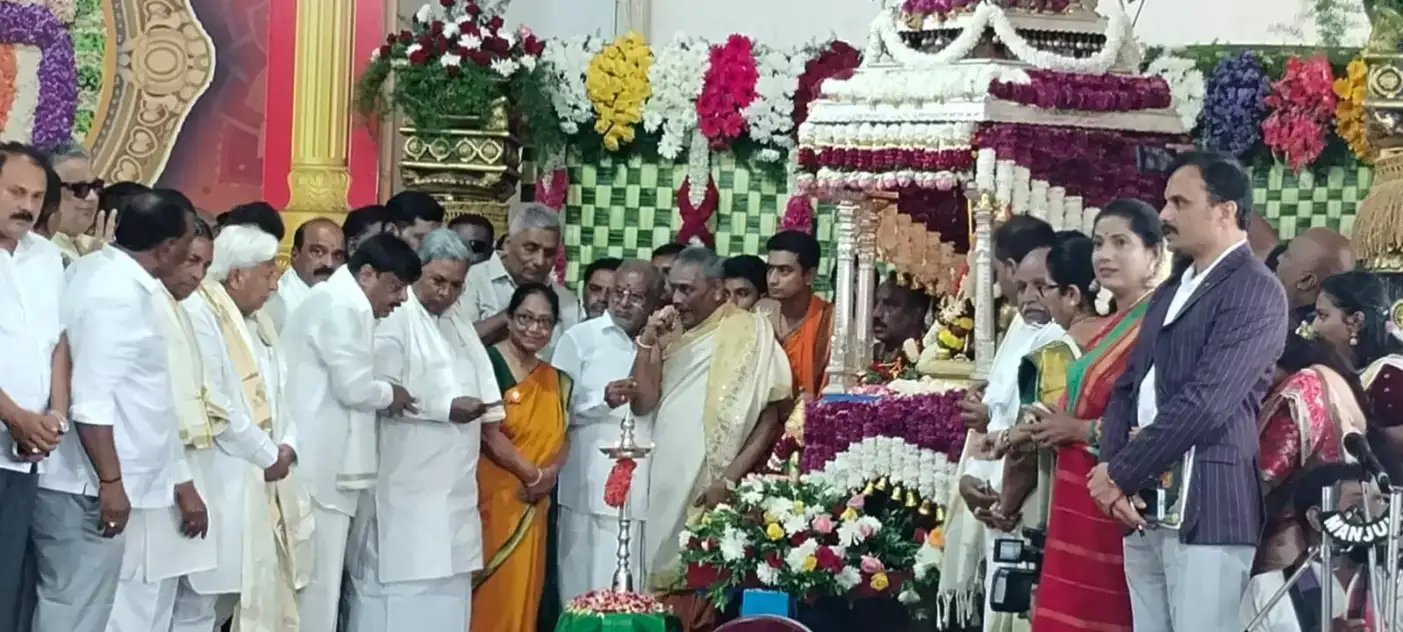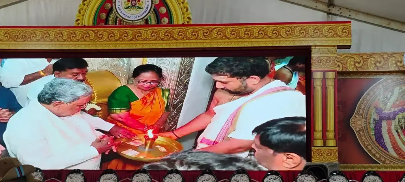 ಈ ವೇಳೆ ವೇದಿಕೆಯ ಮುಂಭಾಗದಲ್ಲಿ ನೆರೆದಿದ್ದ ಭಕ್ತಾದಿಗಳು ಬಾನು ಮುಷ್ತಾಕ್ ಮತ್ತು ಸಿದ್ಧರಾಮಯ್ಯರ ಪರ ಜಯಘೋಷ ಕೂಗಿದರು.