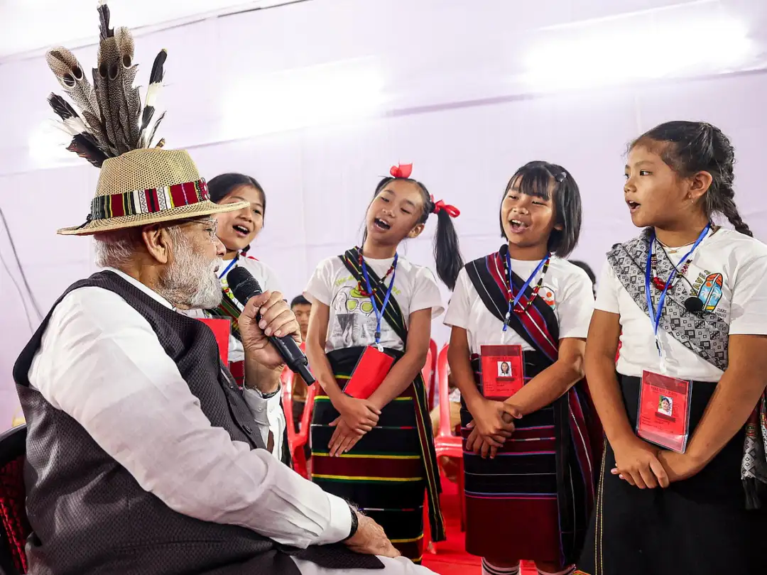 ಪರಿಹಾರದ ಶಿಬಿರದಲ್ಲಿ ನೆಲಸಿರುವ ಸಂತ್ರಸ್ತರ ಮಕ್ಕಳ ಜತೆಗೆ ಪ್ರಧಾನಿ ನರೇಂದ್ರ ಮೋದಿ ಅವರು ಚುರಚಾಂದಪುರದಲ್ಲಿ ಶನಿವಾರ ಮಾತನಾಡಿದರು