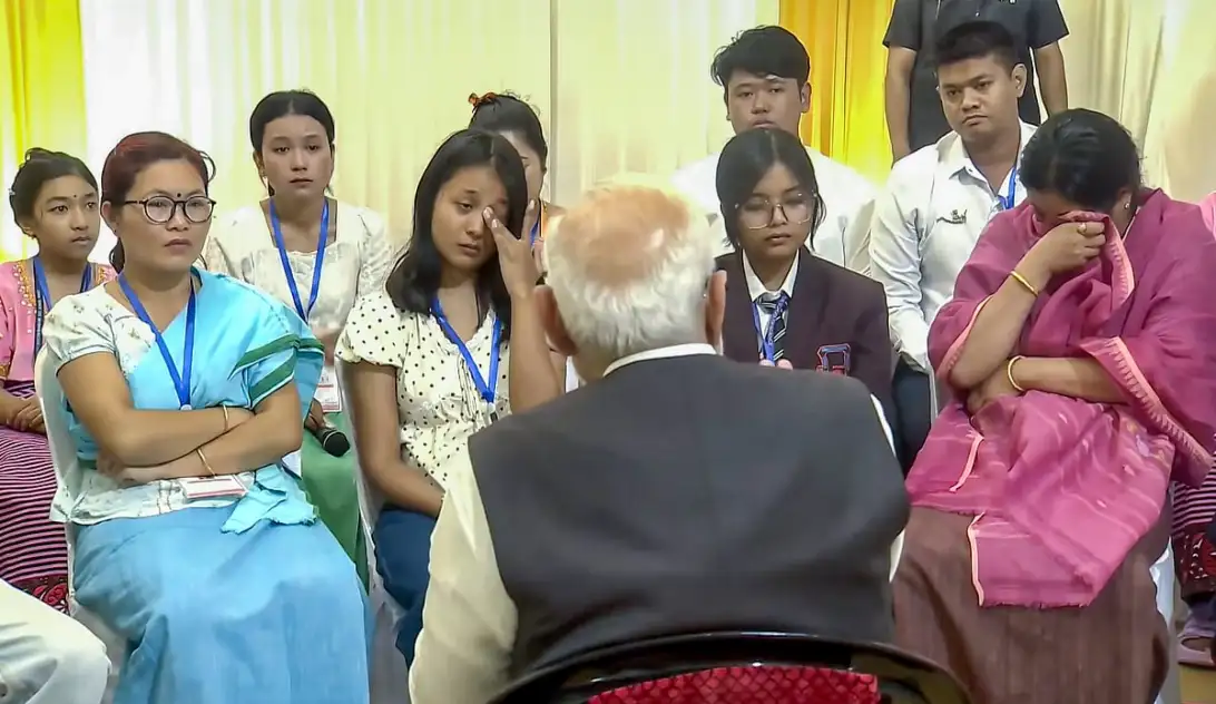 ಜನಾಂಗೀಯ ಹಿಂಸಾಚಾರದಿಂದ ಸ್ಥಳಾಂತರಗೊಂಡ ಕುಕಿ ಬುಡಕಟ್ಟು ಸಮುದಾಯ ಮತ್ತು ಮೈತೇಯಿ ಸಮುದಾಯದ ಸಂತ್ರಸ್ತರ ಜತೆಗೆ ಪ್ರಧಾನಿ ನರೇಂದ್ರ ಮೋದಿ ಅವರು ಶನಿವಾರ ಸಂವಾದ ನಡೆಸಿದರು. ಇಂಫಾಲ್ನ ಐತಿಹಾಸಿಕ ಕಾಂಗ್ಲಾ ಕೋಟೆ ಸಂಕೀರ್ಣ ಮತ್ತು ಚುರಚಾಂದಪುರದ ಶಾಂತಿ ಮೈದಾನದಲ್ಲಿ ಮೋದಿ ಅವರು ಸಂತ್ರಸ್ತರ ಕುಟುಂಬದವರ ನೋವು ಆಲಿಸಿದರು.