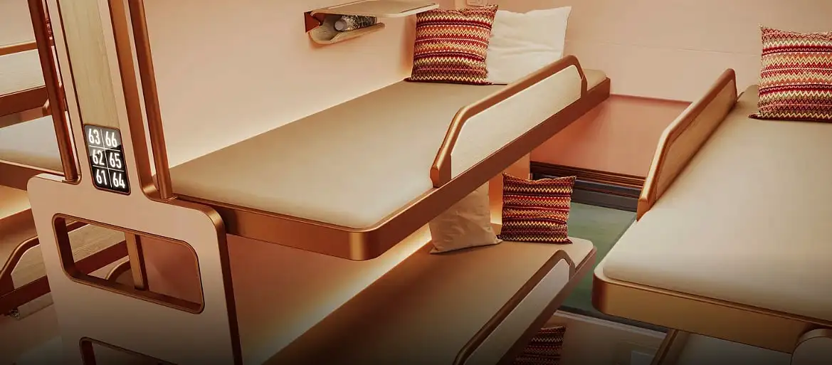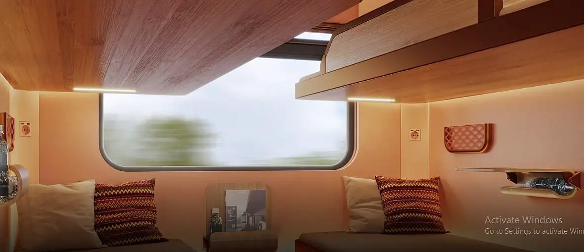 ಪ್ರಯಾಣಿಕರ ಆರಾಮದಾಯಕ ಪ್ರಯಾಣ ಮತ್ತು ಖಾಸಗಿತನ ಕಾಪಾಡಲು ಆದ್ಯತೆ ನೀಡಿ ನಾಲ್ವರು ಪ್ರಯಾಣಿಕರು ಮಲಗಲು ಅನುಕೂಲವಾಗುವಂತ ಪ್ರಥಮ ದರ್ಜೆಯ ವಿನ್ಯಾಸವನ್ನು ಕೈನೆಟ್ ರೈಲ್ವೆ ಸೊಲೂಷನ್ಸ್ ವಿನ್ಯಾಸ ಮಾಡಿದೆ. ಮೇಲಿನ ಬರ್ತ್ಗೆ ಹೋಗಲು ಸುಲಭವಾದ ಮೆಟ್ಟಿಲು, ಪ್ರತಿ ಬರ್ತ್ಗೂ ಯುಎಸ್ಬಿ ಪೋರ್ಟ್, ಓದಲು ಪ್ರತ್ಯೇಕ ಬೆಳಕಿನ ವ್ಯವಸ್ಥೆ ಮತ್ತು ಸಾಮಾನು, ಸರಂಜಾಮು ಇಡಲು ವಿಭಿನ್ನ ಮಾದರಿಯ ವಿನ್ಯಾಸ ಇದರದ್ದು.
