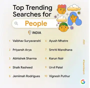 ಈ ವರ್ಷ ಅನೇಕರು ವಿವಿಧ ಕ್ಷೇತ್ರಗಳಲ್ಲಿ ಅದ್ಭುತ ಸಾಧನೆಗಳಿಂದ ಗುರುತಿಸಿಕೊಂಡಿದ್ದಾರೆ. ಅವರಲ್ಲಿ ಗೂಗಲ್ನಲ್ಲಿ ಈ ಬಾರಿ ವೈಭವ್ ಸೂರ್ಯವಂಶಿ ಹೆಸರನ್ನು ಅತಿ ಹೆಚ್ಚು ಜನರು ಹುಡುಕಾಟ ನಡೆಸಿದ್ದಾರೆ.