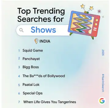 ಈ ಬಾರಿ ನೆಟ್ಫ್ಲಿಕ್ಸ್ನಲ್ಲಿ ಬಿಡುಗಡೆಯಾದ ಸ್ಕ್ವಾಡ್ ಗೇಮ್, ಅಮೇಜಾನ್ ಪ್ರೈಮ್ನಲ್ಲಿ ತೆರೆಕಂಡ ಪಂಚಾಯತ್, ಬಿಗ್ ಬಾಸ್ ಶೋಗಳನ್ನು ಹೆಚ್ಚು ಹುಡುಕಾಟ ನಡೆಸಿದ್ದಾರೆ.