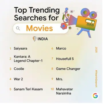 ಈ ಬಾರಿ ಬಾಲಿವುಡ್ನ ಸೈಯಾರಾ, ವಾರ್ 2, ಸನಮ್ ತೇರಿ ಕಸಮ್, ಕನ್ನಡದ ಕಾಂತಾರ, ಕೂಲಿ ಸಿನಿಮಾಗಳ ಬಗ್ಗೆ ಹೆಚ್ಚು ಜನ ಹುಡುಕಿದ್ದಾರೆ.
