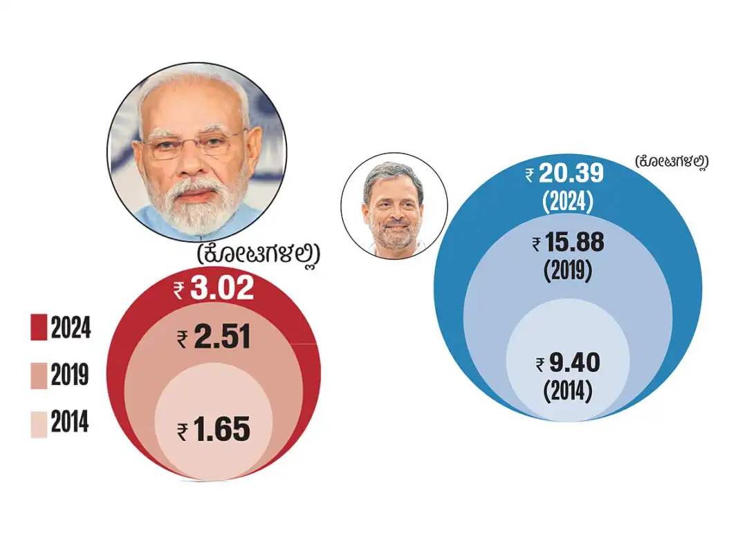 2014ರಲ್ಲಿ ₹ 1.65 ಕೋಟಿ ಇದ್ದ ಪ್ರಧಾನಿ ನರೇಂದ್ರ ಮೋದಿಯವರ ಒಟ್ಟು ಆಸ್ತಿ 2024ಕ್ಕೆ ₹ 3.02 ಕೋಟಿಗೆ ಏರಿಕೆಯಾಗಿದೆ. ₹ 2019ರಲ್ಲಿ ಅವರ ಆಸ್ತಿ ₹ 2.51 ಕೋಟಿ ಇತ್ತು.