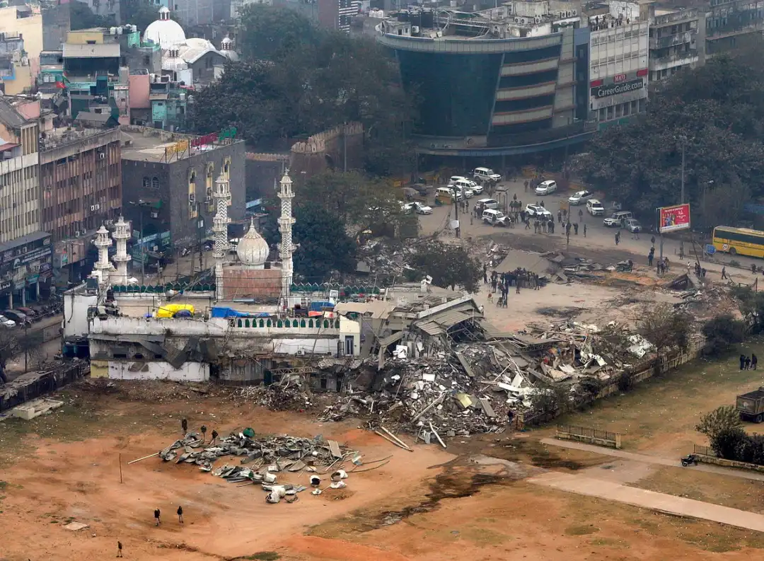 ದೆಹಲಿಯ ರಾಮಲೀಲಾ ಮೈದಾನದ ಬಳಿ ಸೈಯದ್ ಫೈಜ್ ಇಲಾಹಿ ಮಸೀದಿ ಬಳಿ ದೆಹಲಿ ಮಹಾನಗರ ಪಾಲಿಕೆ ವತಿಯಿಂದ ಒತ್ತುವರಿ ತೆರವು ಕಾರ್ಯಾಚರಣೆ ನಡೆಯಿತು - ಪಿಟಿಐ ಚಿತ್ರ ವಿವೇಕ್ ಕುಮಾರ್ ದೆಹಲಿ ಮಹಾನಗರ ಪಾಲಿಕೆ ಉಪ ಆಯುಕ್ತದೆಹಲಿ ಹೈಕೋರ್ಟ್ ಸೂಚನೆಯಂತೆ ಕಾರ್ಯಾಚರಣೆ ನಡೆಯಿತು. ಒತ್ತುವರಿ ಮಾಡಿಕೊಂಡಿದ್ದ 36 ಸಾವಿರ ಚದರ ಅಡಿ ಪ್ರದೇಶವನ್ನು ವಶಕ್ಕೆ ಪಡೆಯಲಾಗಿದೆ.