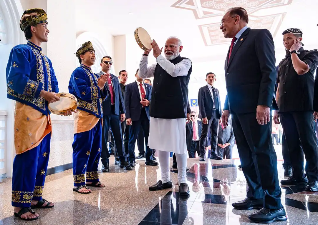 ಕ್ವಾಲಾಲಂಪುರದಲ್ಲಿ ನಡೆದ ಭಾರತೀಯ ಸಮುದಾಯದವರ ಕಾರ್ಯಕ್ರಮದಲ್ಲಿ ಪ್ರಧಾನಿ ನರೇಂದ್ರ ಮೋದಿ ಅವರು ಖಂಜರಿಯನ್ನು ಬಾರಿಸಿದರು. ಮಲೇಷ್ಯಾ ಪ್ರಧಾನಿ ಅನ್ವರ್ ಇಬ್ರಾಹಿಂ ಪಾಲ್ಗೊಂಡಿದ್ದರು -ಪಿಟಿಐ ಚಿತ್ರ