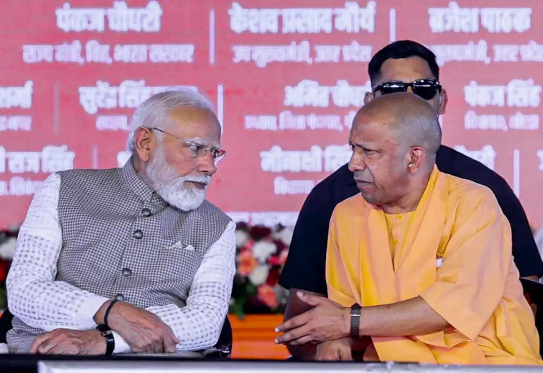 ನವದೆಹಲಿ ಬಳಿ ನೊಯ್ಡಾ ಅಂತರರಾಷ್ಟ್ರೀಯ ವಿಮಾನ ನಿಲ್ದಾಣ ಉದ್ಘಾಟನಾ ಕಾರ್ಯಕ್ರಮದಲ್ಲಿ ಪಾಲ್ಗೊಂಡಿದ್ದ ಪ್ರಧಾನಿ ನರೇಂದ್ರ ಮೋದಿ ಉತ್ತರ ಪ್ರದೇಶ ಮುಖ್ಯಮಂತ್ರಿ ಯೋಗಿ ಆದಿತ್ಯನಾಥ ಅವರೊಂದಿಗೆ ಶನಿವಾರ ಮಾತುಕತೆಯಲ್ಲಿ ತೊಡಗಿದ್ದರು