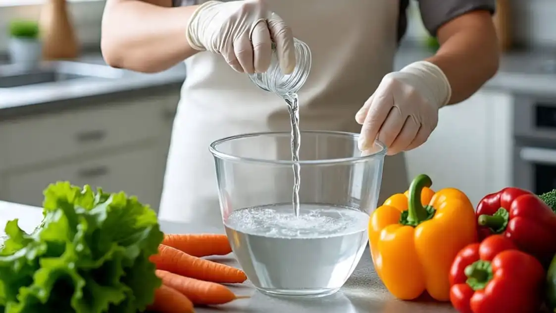 ವಿನೆಗರ್ ನೈಸರ್ಗಿಕ ಶುಚಿಗೊಳಿಸುವ ಏಜೆಂಟ್ ಆಗಿದ್ದು ಅದು ಬ್ಯಾಕ್ಟೀರಿಯಾ ಮತ್ತು ಸ್ವಲ್ಪ ಮಟ್ಟಿಗೆ ಕೀಟನಾಶಕಗಳನ್ನು ತೆಗೆದುಹಾಕಲು ಸಹಾಯ ಮಾಡುತ್ತದೆ. ಒಂದು ಬಟ್ಟಲಿನಲ್ಲಿ ಸ್ವಲ್ಪ ನೀರು ತೆಗೆದುಕೊಂಡು, ಅದಕ್ಕೆ 1-2 ಟೀ ಚಮಚ ವಿನೆಗರ್ ಸೇರಿಸಿ, ನಂತರ ಹಣ್ಣುಗಳು ಮತ್ತು ತರಕಾರಿಗಳನ್ನು ಈ ಮಿಶ್ರಣದಲ್ಲಿ 10 ನಿಮಿಷಗಳ ಕಾಲ ನೆನೆಸಿಡಿ. ಟೊಮೆಟೊ ಅಥವಾ ಸೌತೆಕಾಯಿಯಂತಹ ನಯವಾದ ಮೇಲ್ಮೈ ಹೊಂದಿರುವ ತರಕಾರಿಗಳಿಗೆ ಈ ವಿಧಾನ ಉತ್ತಮ. ಅತಿಯಾದ ವಿನೆಗರ್ ಬಳಸುವುದನ್ನು ತಪ್ಪಿಸಿ, ಏಕೆಂದರೆ ಇದು ರುಚಿ ಮತ್ತು ಸುವಾಸನೆಯ ಮೇಲೆ ಪರಿಣಾಮ ಬೀರಬಹುದು.